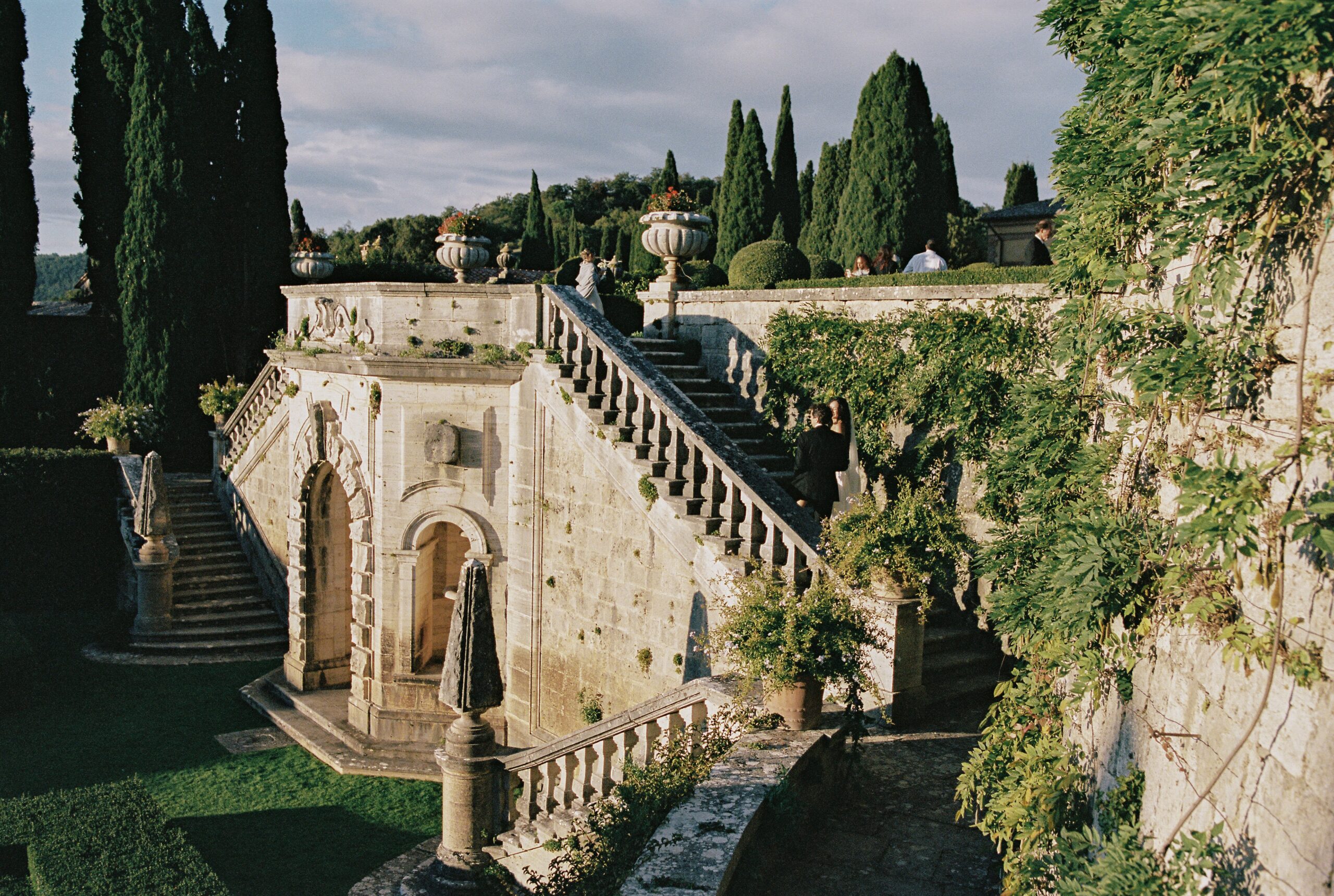 Steeped in centuries of history and framed by breathtaking panoramic views, this elegant 15th-century villa is surrounded by iconic Renaissance gardens designed by the famed architect Cecil Pinsent — with geometric hedges, lemon terraces, cypress-lined avenues and pergolas draped in wisteria that create a truly magical setting for your ceremony.